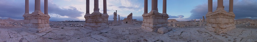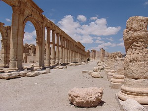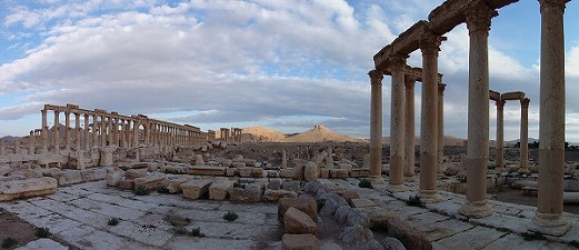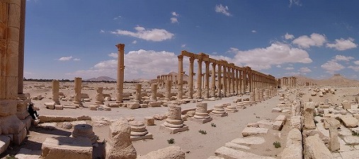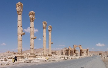 | パルミラは、シリアにある美しい都市遺跡です。3世紀にローマ帝国との独立戦争に敗れ、都市は破壊されましたが、神殿、列柱通りや円形劇場などが残り、繁栄した当時の姿をとどめていました。 写真は、2005年に撮影したものです。現在、建物のいくつかは、残念ながら現存しませんが、どれも記憶にとどめたい、この遺跡を代表する遺構のため掲載しています。なお、撮影した時間帯によって、色調が異なります。 |