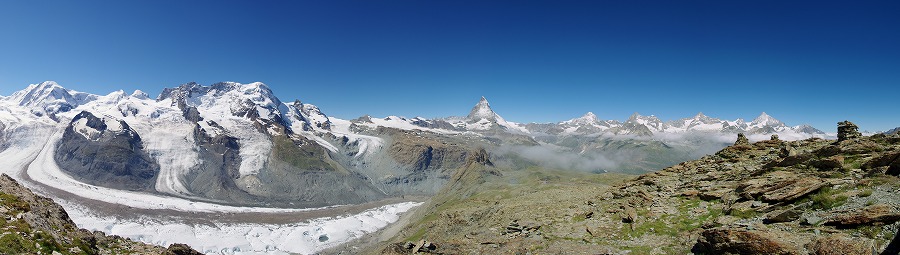 | ゴルナー氷河(左)とマッターホルン(中央) | |||||||||