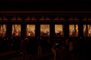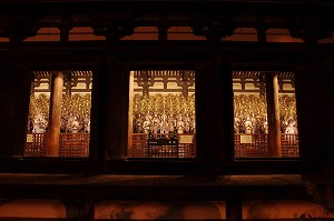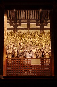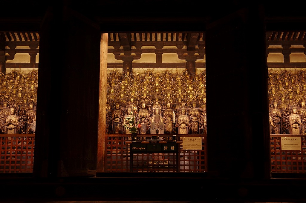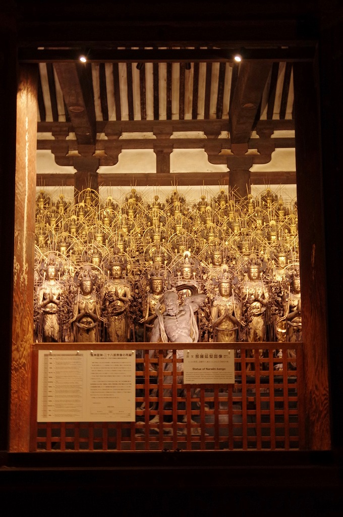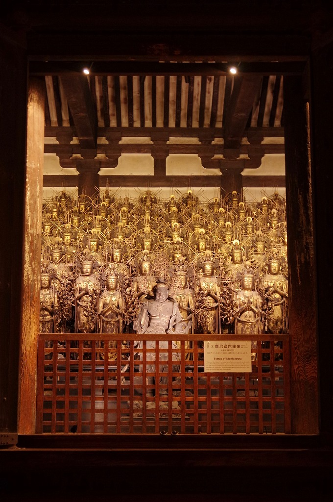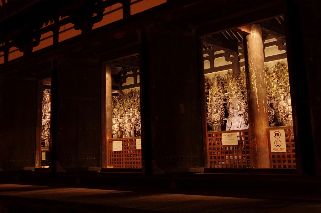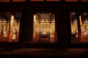 | 三十三間堂です。正式名称は蓮華王院(れんげおういん)で、平安時代に創建し、焼失後、鎌倉時代に再建されました。南北約120mの長い本堂には、観音立像が整然と並び圧巻です。普段は写真撮影ができませんが、三日間限定で夜間拝観が実施され、堂外からの撮影が可能でした。極楽浄土を具現化した迫力の仏教美を紹介します。(2025年11月撮影) 既に還座していますが、東京国立博物館で展示していた時の写真も紹介します。(2003年9月撮影) |