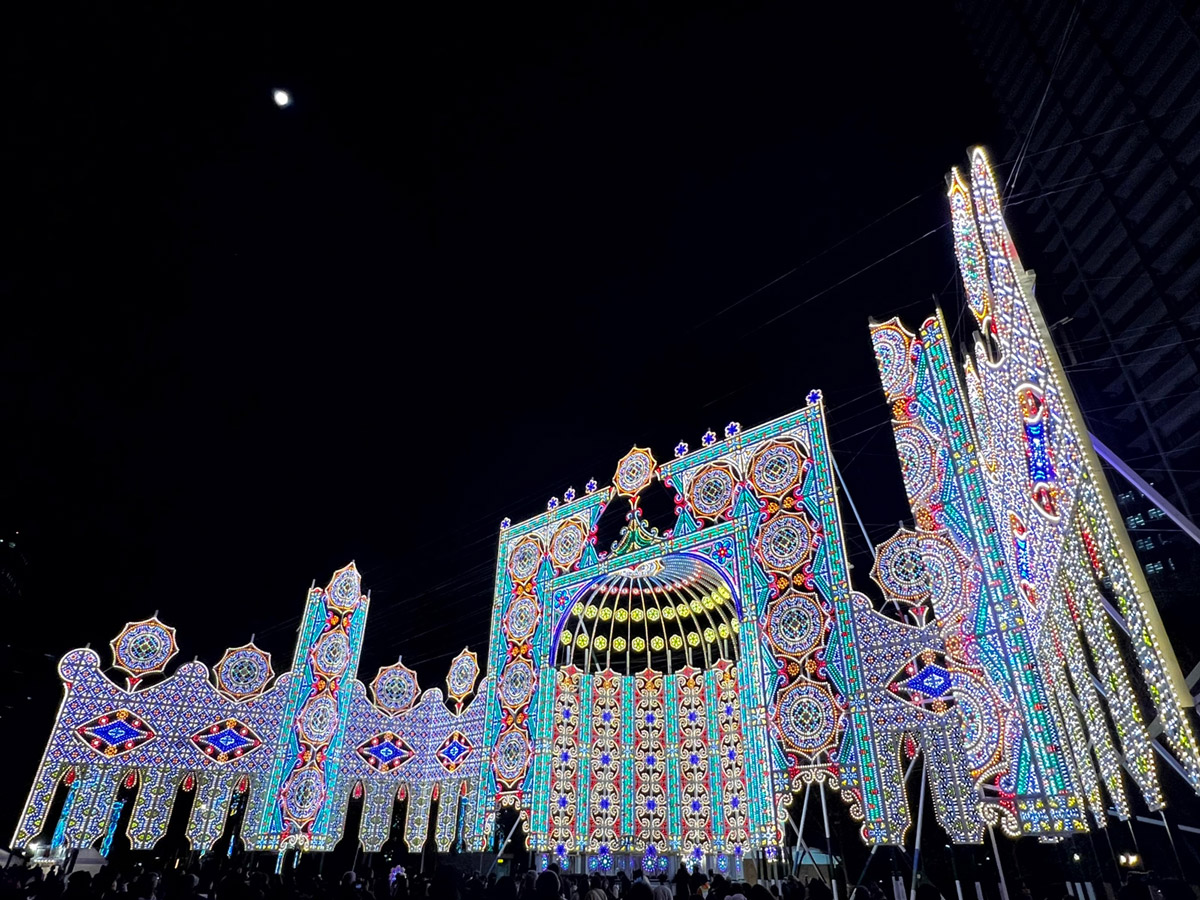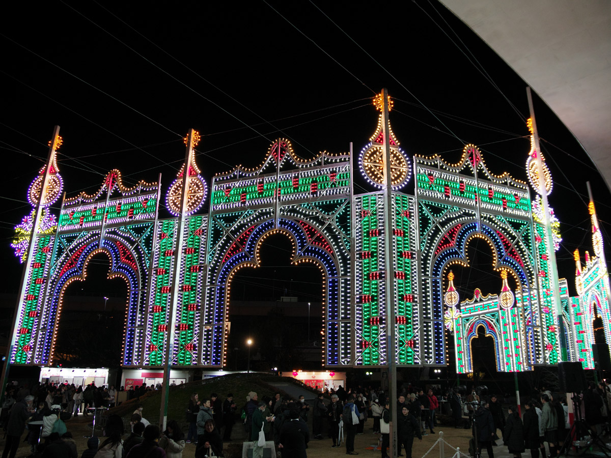 メリケンパーク入口の巨大な光の玄関口「フロントーネ」。幅約48m。