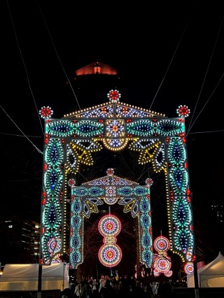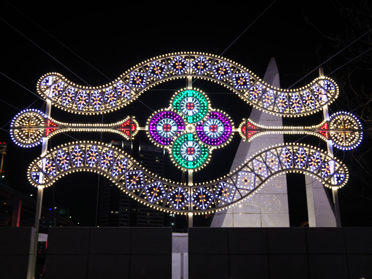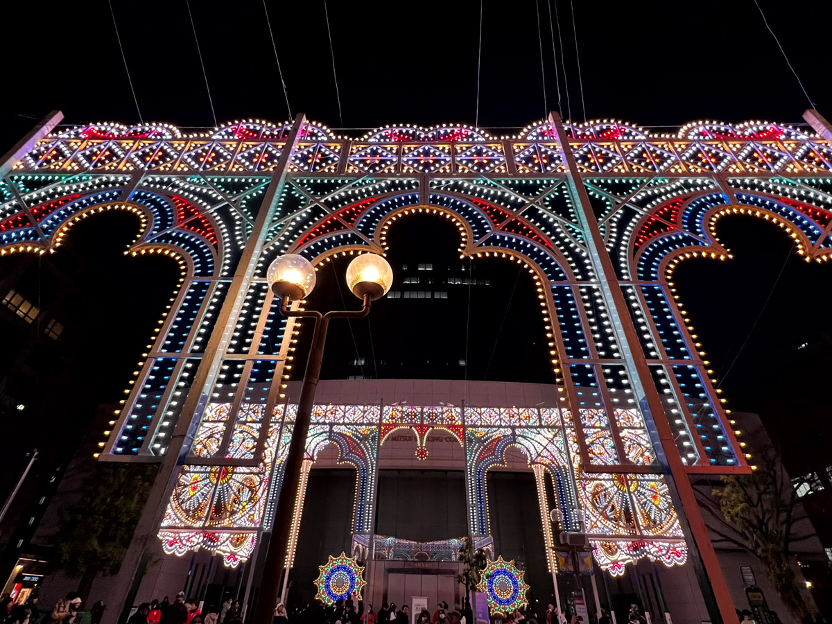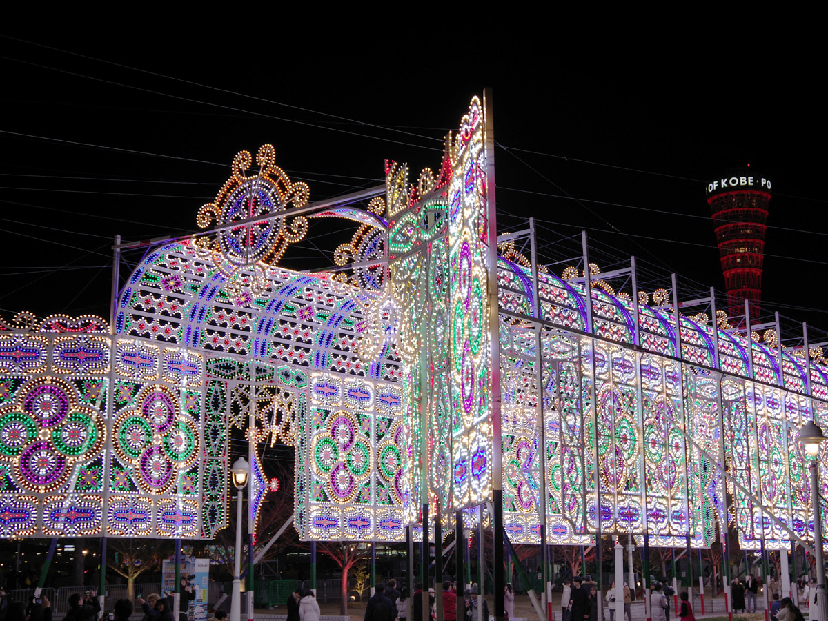 2026年に第31回を迎えた神戸ルミナリエ。今年もメイン会場の東遊園地に加え、旧居留地やメリケンパークなど、いくつかのエリアに分けて作品を展示。交通規制を伴う一方通行の場所は減り、自分のペースで神戸の街を巡りながら光のアートを見ることができ、場所ごとに違う表情を楽しめます。