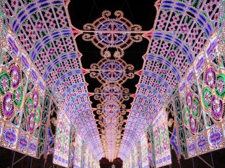 南側園地の花時計周辺を彩る、高さ約9mの光の壁「スパッリエーラ」。