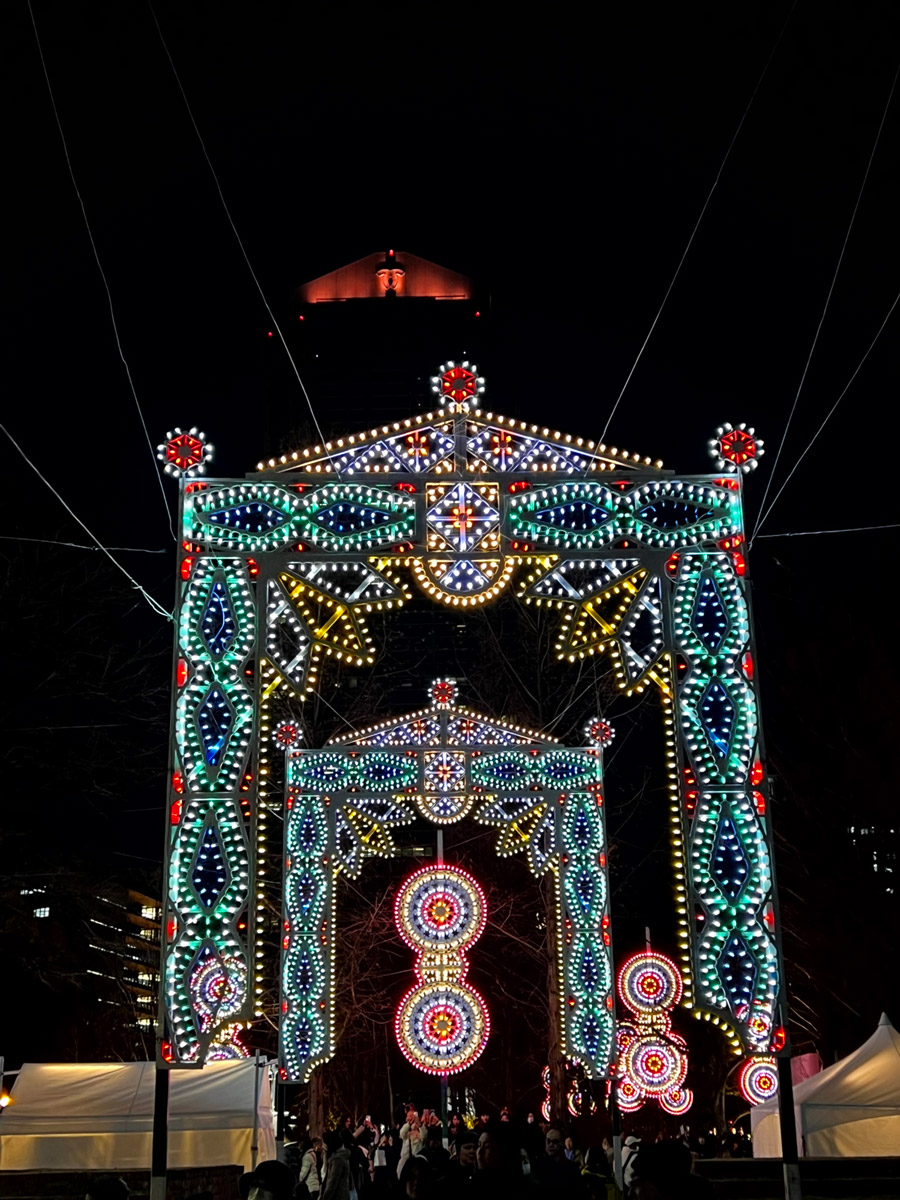 東遊園地の広場と南側の園地をつなぐ、光の並木道。