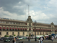 1523年アステカ皇帝の宮殿跡地にコルテスが建てた宮殿。現存するのは1692年の焼失後再建されたものです。現在内部には大統領の執務室が置かれていて、毎年9月15日の独立記念日には、大統領が自由の鐘を鳴らした後バルコニーにあらわれます。