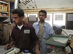 サナアのスーパーでは、おみやげのイエメンビスコとミネラルたっぷりの岩塩、サウジ産の香辛料(タバスコみたいだけど、酢が入っていない)を購入。隣のスパイスやさんではイエメン産の「モカ」250g入り×10袋(2.5kgでなんと2000ルピア=1000円)を購入。