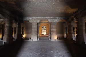 | 美しい壁画で有名な石窟群です。川の侵食で出来たU字型の峡谷に、(前期)紀元前2世紀~2世紀と、(後期)5世紀~7世紀とに、僧院や礼拝堂が造営されました。 ここでは、インドが誇る古代の仏教美術を堪能できます。特に「蓮華手菩薩」は、アジャンターを代表する壁画として有名です。遠く日本にも受け継がれた、古代仏教美術の粋をお楽しみください。 |