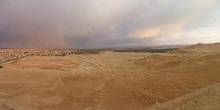 | アラブ城から望む | 遺跡の左に現在の街、右に塔墳群(墓の谷)がある | ||||||||