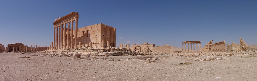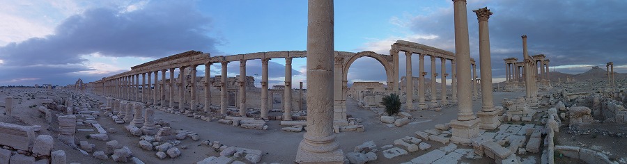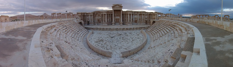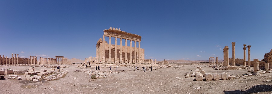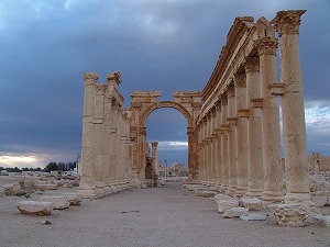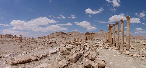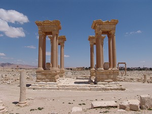 | パルミラは、シリアにある美しい都市遺跡です。3世紀にローマ帝国との独立戦争に敗れ、都市は破壊されましたが、神殿、列柱通りや円形劇場などが残り、繁栄した当時の姿をとどめていました。 写真は、2005年に撮影したものです。現在、建物のいくつかは、残念ながら現存しませんが、どれも記憶にとどめたい、この遺跡を代表する遺構のため掲載しています。なお、撮影した時間帯によって、色調が異なります。 |
