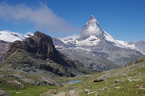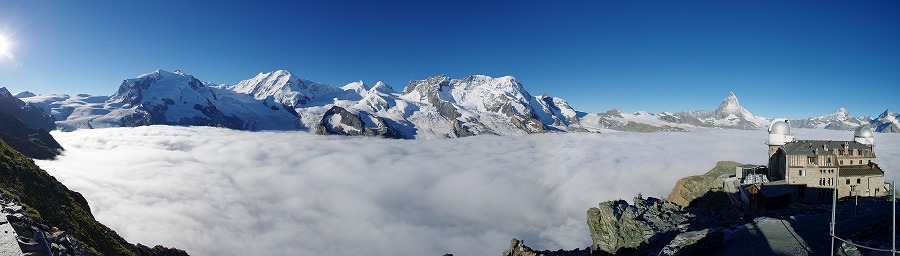 | ゴルナー氷河(左)とマッターホルン(中央) | |||||||||