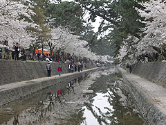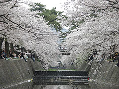 JRさくら夙川駅が3/17に誕生し便利になったので、久々にさくらの季節にこの地を訪れてみました。今年は暖冬だったり、花冷えがあったりでどうも見ごろの時期が図りにくい年でしたが、ほぼ例年どおりになりました。前日(土曜日)は小雨でしたが、この日は黄砂で青空は見えないながらも、空気はあたたかく絶好の散歩日和。鑑賞兼宴会人気スポットの川沿いは、ごった返しのおおにぎわい。公園内はいつのまにか火気厳禁になり、バーベキューの「においがプンプン」「煙がモクモク」がなくなっていたのはヨカッタ(^^)