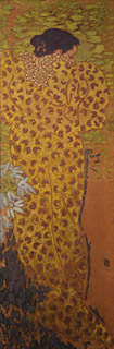 ピエール・ボナール 「バスローブ」 (オルセー美術館、2016年撮影) 縦横比、衣服の模様など、浮世絵の 影響をかなり色濃く感じる作品。 大きな写真 |