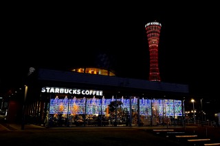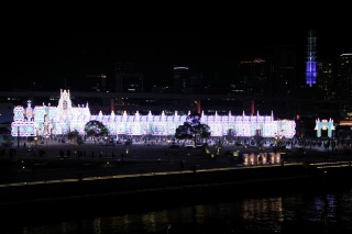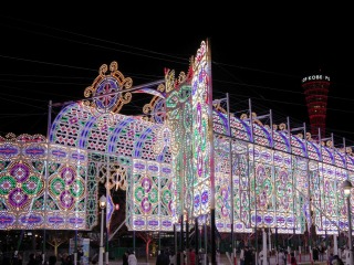 メリケンパーク入口の巨大な光の玄関口「フロントーネ」。幅約48m。