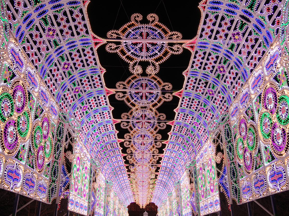 東遊園地の広場と南側の園地をつなぐ、光の並木道。