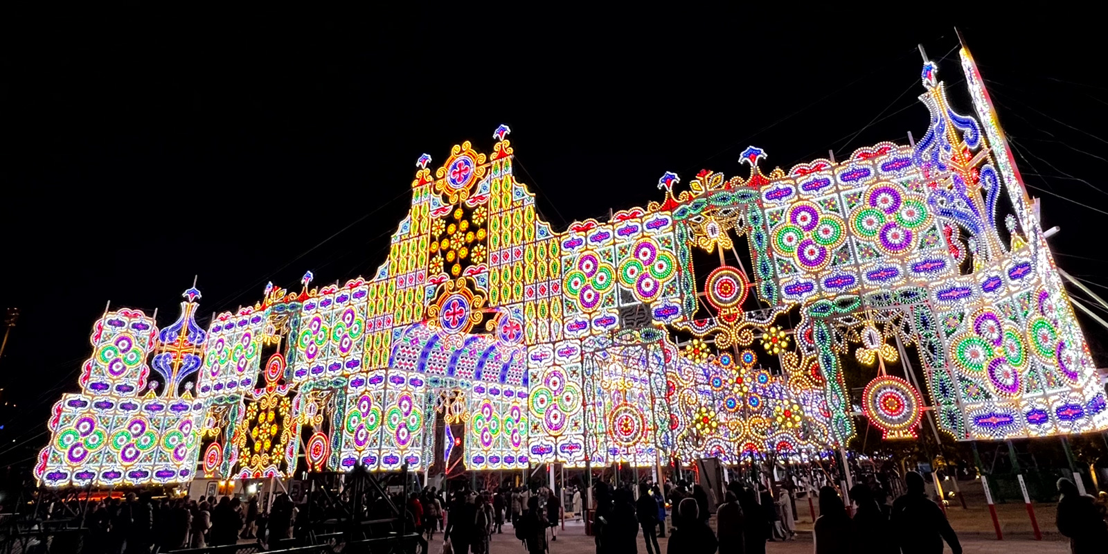 2026年に第31回を迎えた神戸ルミナリエ。今年もメイン会場の東遊園地に加え、旧居留地やメリケンパークなど、いくつかのエリアに分けて作品を展示。交通規制を伴う一方通行の場所は減り、自分のペースで神戸の街を巡りながら光のアートを見ることができ、場所ごとに違う表情を楽しめます。