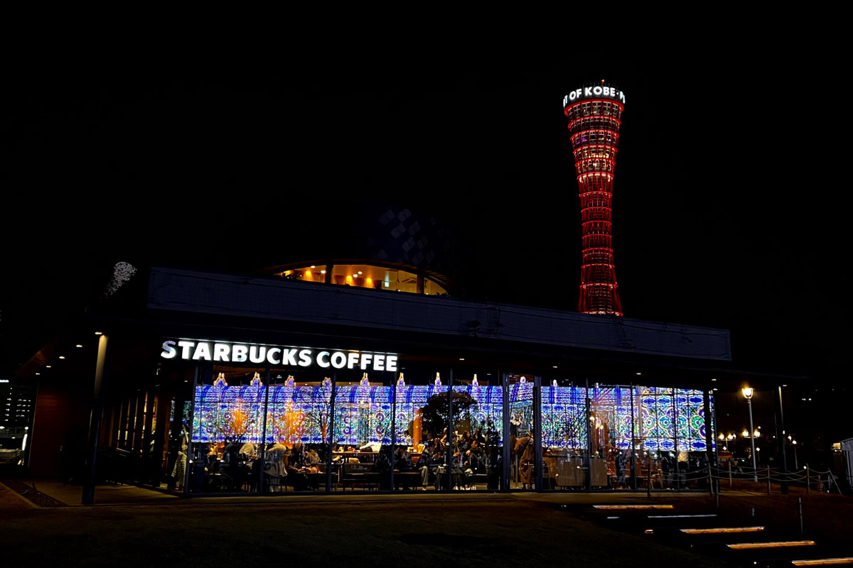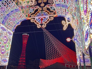 ルミナリエとポートタワー。メリケンパークならではの取り合わせ。