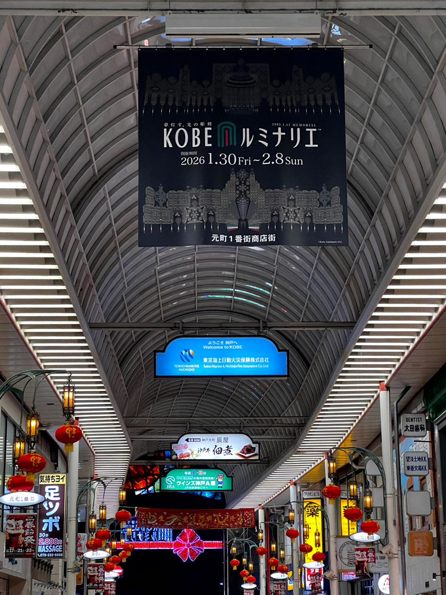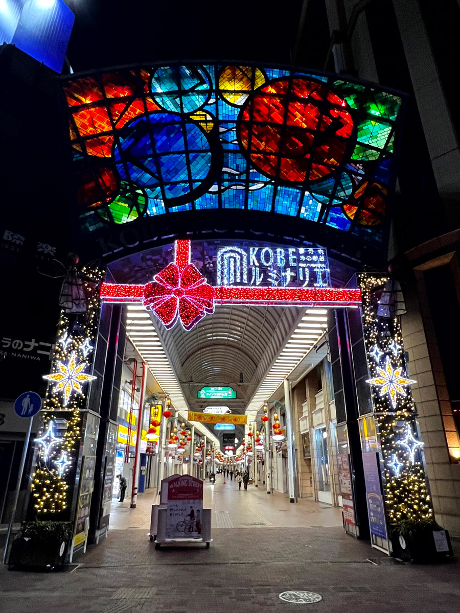 元町の商店街も、KOBEルミナリエの装飾で盛り上げています。