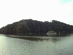 近鉄尼ヶ辻駅から見えます。濠の横に浮かぶ島は、天皇のため不老不死の実を探しにいった田道間守のお墓。