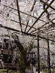 宸殿前の樹齢100年を超える枝垂桜は見事。