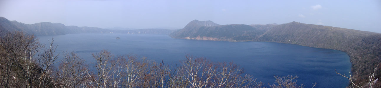 裏摩周展望台からのパノラマ。展望台の中では標高がもっとも低く