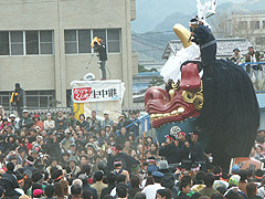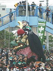 お旅所曳出し曳出しは曳込みほどの混雑はなく、比較的ゆっくり鑑賞できます。目の前から徐々にヤマが去っていく寂しさはありますが、砂地で大きな声とともに重いヤマを曳く男たちの迫力は、曳込みも曳出しも同じ!前半は少し離れた高台から見ていましたが、後半はさらに空いてきたのでかなり近い位置からの鑑賞!思いっきり砂や塩をかぶってしまいますが、やっぱり目の前で見るのが一番です(^^)