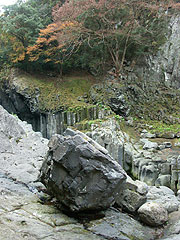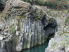 高千穂峡は、阿蘇山の噴火による溶岩が五ヶ瀬川に流れ、急激に冷えたためできた渓谷です。国の名勝・天然記念物に指定されています。